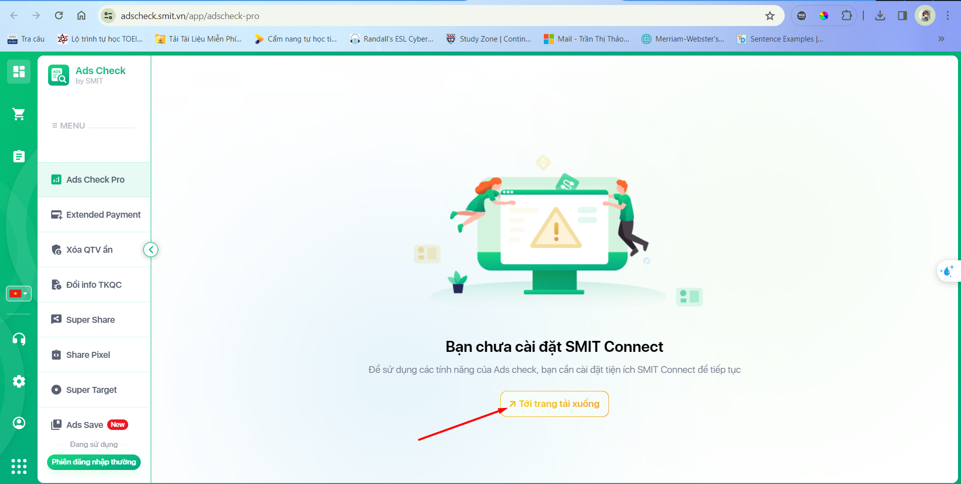 Bước 4: Nếu bạn chưa cài đặt bạn có thể chọn “Tới trang tải xuống” hoặc truy cập smit-connect > Tải xuống SMIT Connect > Giải nén